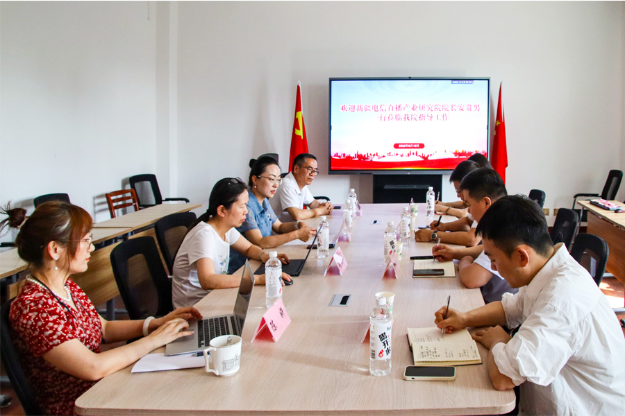 6月13日,新疆电信全渠道运营中心总经理、新疆直播产业研究院院长安贵男、副院长许四化等一行四人莅临我院进行交流座谈,学院党委副书记、院长王海芳教授、副院长周燕华和部分教师参加座谈,王海芳主持了座谈会。