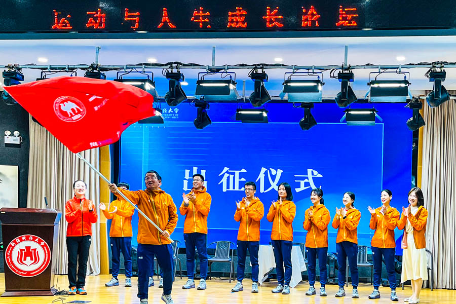 授令旗,将出征。队长白士华接过出征旗,与队员共同喊出口号:“新疆财大,亚克西!”
