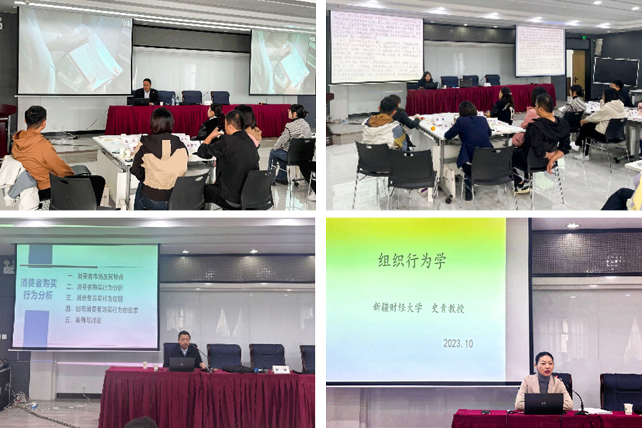 在课堂讲解过程中,77779193永利官网经济学院党委书记敬莉教授、工商管理学院(MBA学院)副院长史青教授、李季鹏教授、金融学院张忠俊副教授分别就新发展格局下新疆经济如何高质量发展、组织行为基本认知、企业文化与CI战略、消费者购买行为分析等方面作教学分享。在教学案例分析环节,学员们自动分成小组,在老师的组织和引导下全身心投入案例情境,将理论学习与解决实践问题紧密结合。在素质拓展训练活动中,学员们打破原有部门和岗位身份,默契配合、互相支持,共同完成了“鼓动人心”“高空行走”“毕业墙”等训练项目,加深了彼此的理解、增强了组织的凝聚力。