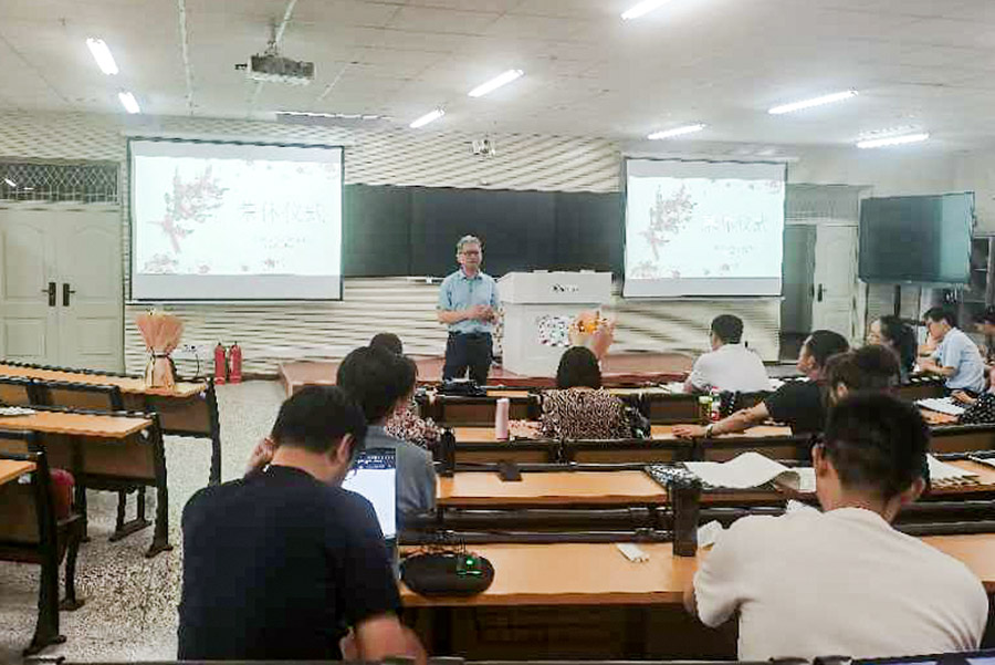 仪式第五项,陈玉萍教授和尔肯副教授分别发表了退休感言。两位退休教师分别回顾了从教几十年的点点滴滴,他们从感谢、感悟和祝福三个方面谈了自己的想法,分享了宝贵的人生经验和深刻感悟,大家被他们的发言深深打动。两位教师的退休感言中饱含了他们对教育事业的热爱和对学院及同事的感谢与不舍,表达对学院蓬勃发展的美好祝福,表示会继续关心和支持学院的教育事业发展。