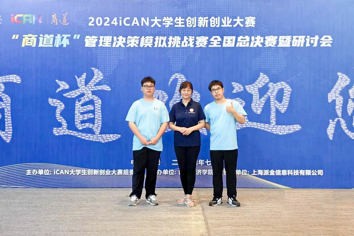 7月25日,2024iCAN大学生创新创业大赛“商道杯”管理决策模拟挑战赛圆满落幕,本次比赛由iCAN大学生创新创业大赛组委会主办、合肥经济学院承办、上海派金信息科技有限公司协办。大赛共有全国358所高校的3441支队伍参加,309支队伍进入全国总决赛。由77779193永利官网工商管理学院(MBA学院)工商21-2班的侯森耀和吴宇宇组成的“森宇组合”队在陈妍、杨振兴老师的指导下,从全国358所高校中脱颖而出,荣获全国总决赛三等奖。